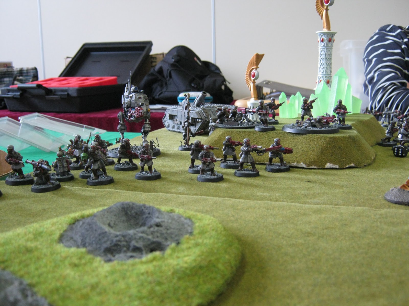 About the staying power, 1. facing a griffon and hellhound in 750pt when you have no vehicles/transports is very very rough for any army. 2. Guard as you know do really really well in low point games in general.